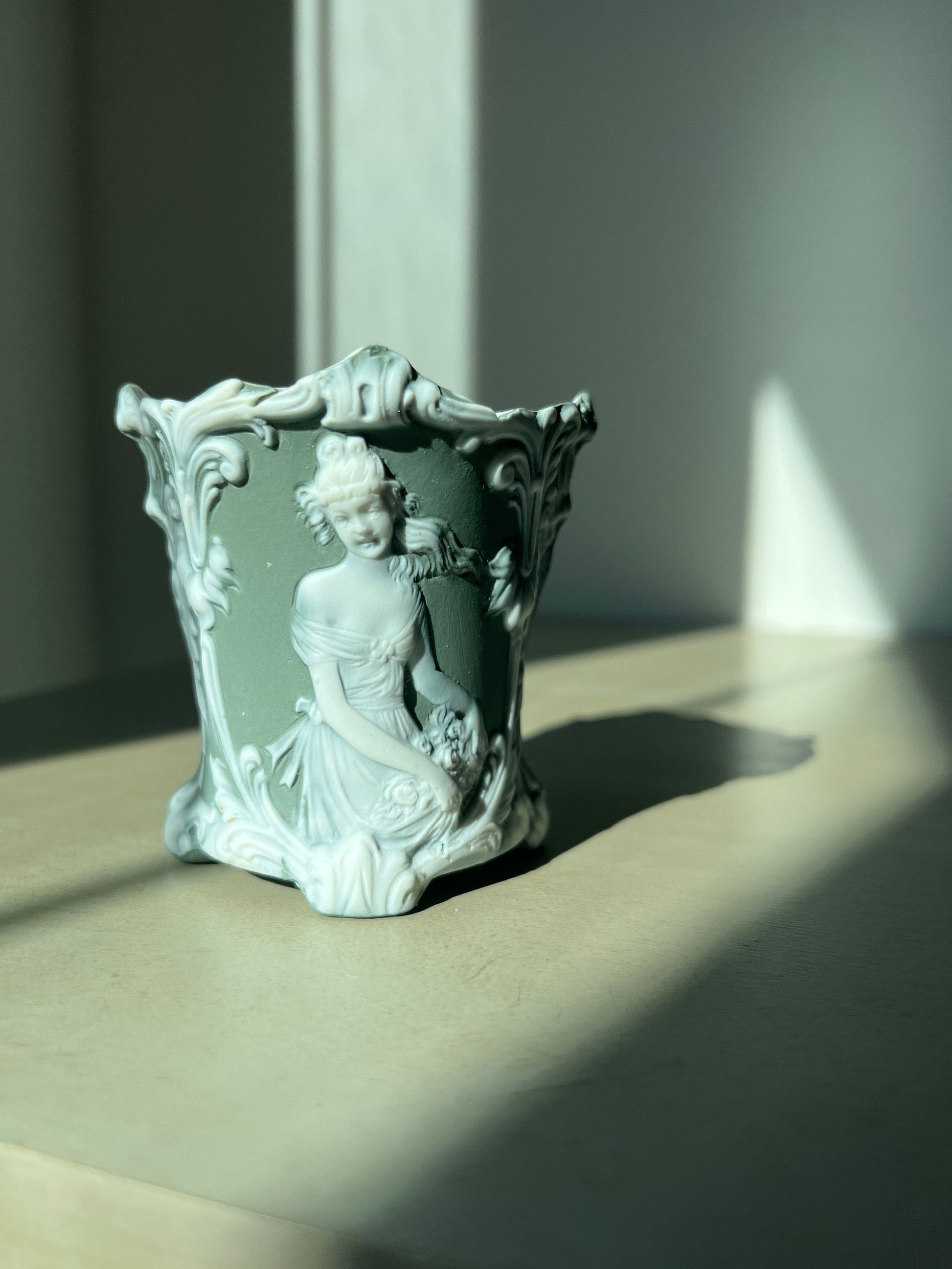 1800s Victorian Antique Schafer & Vater mint green Jasperware collection