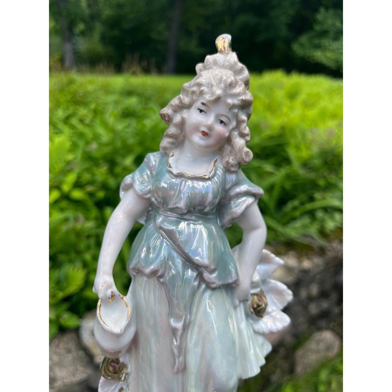 This is a lovely 1920s to 1930s German lusterware porcelain figurine in shape 5098.