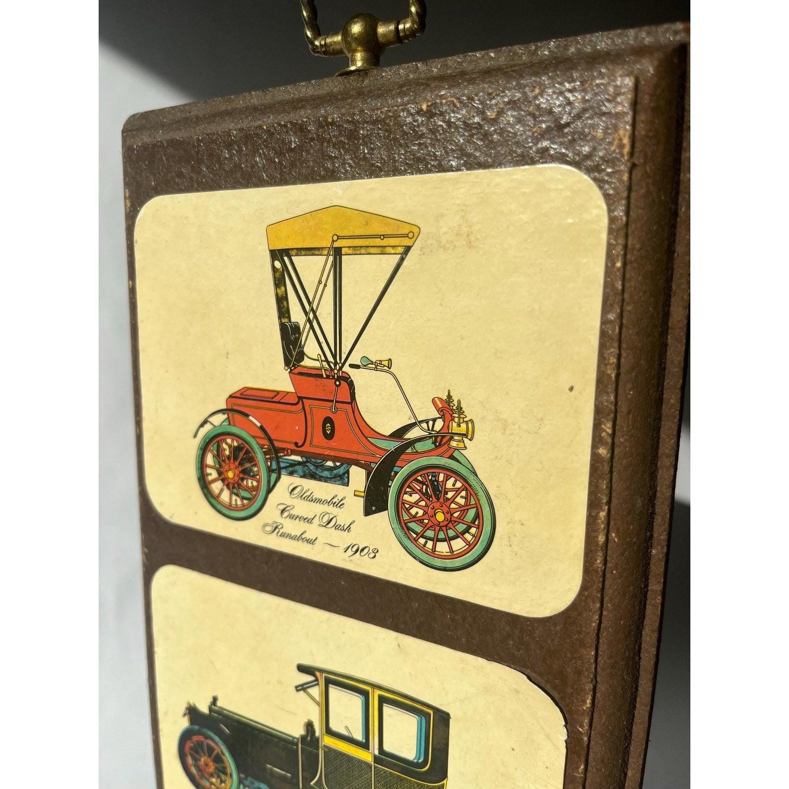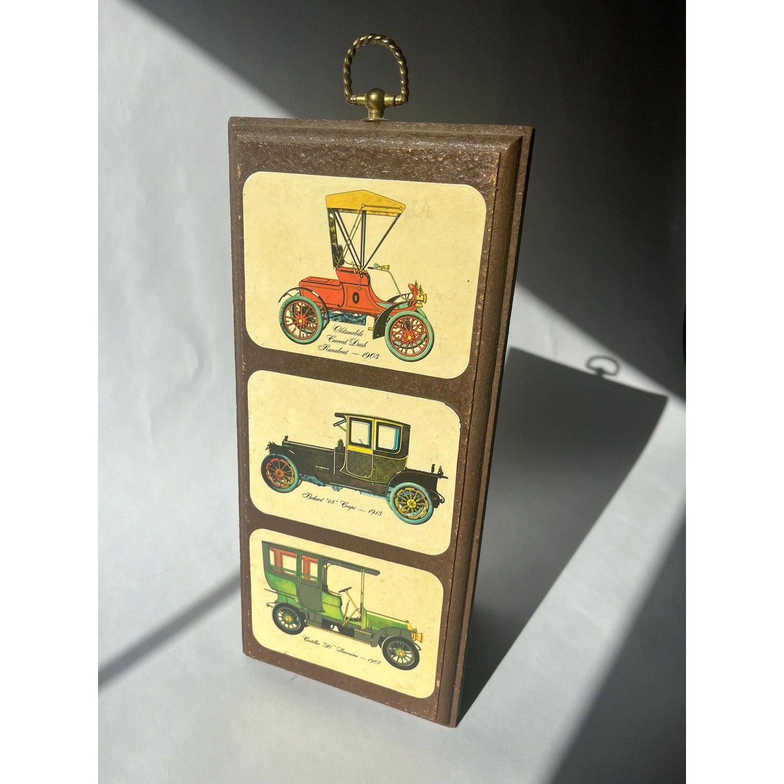 Antique cars graphics wooden wall plaque Oldsmobile Curved Dash Runabout 1903, Packard “48 Coupe 1913, Cadillac “H Limousine 1907.