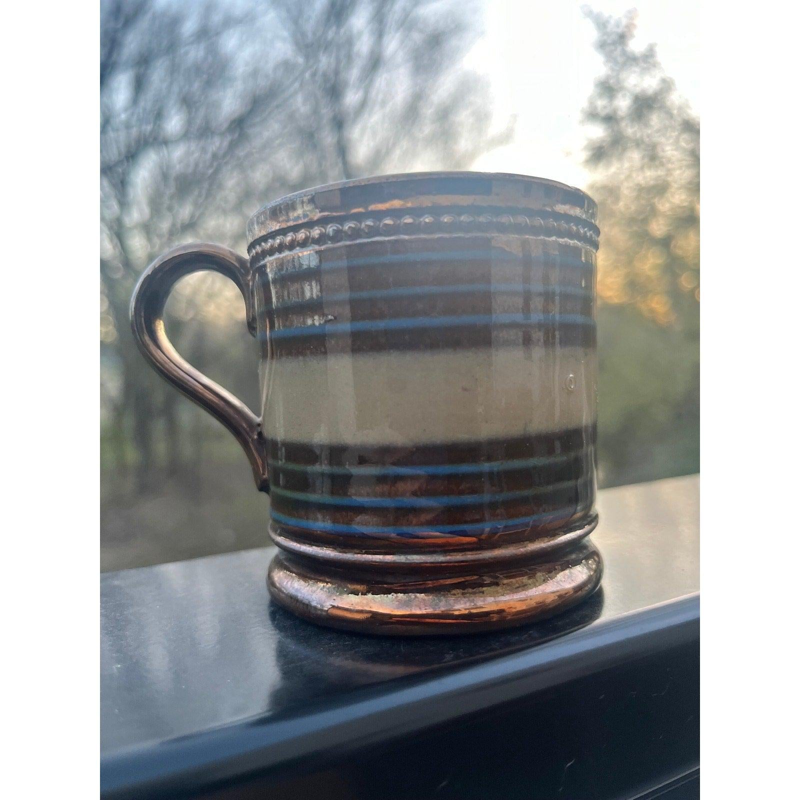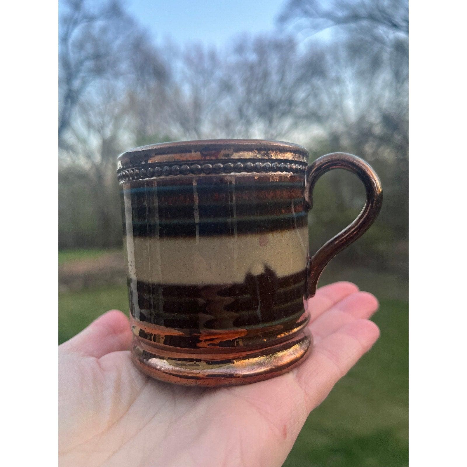 Antique copper lusterware mug. - 2 3/4 inches tall.