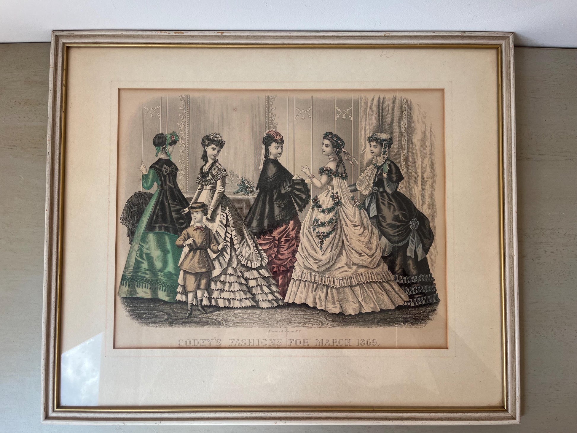 The larger one (15x12.5) is a Godeys Fashion for March 1869 fashion plate (printed by Kimmel & Forster NY)