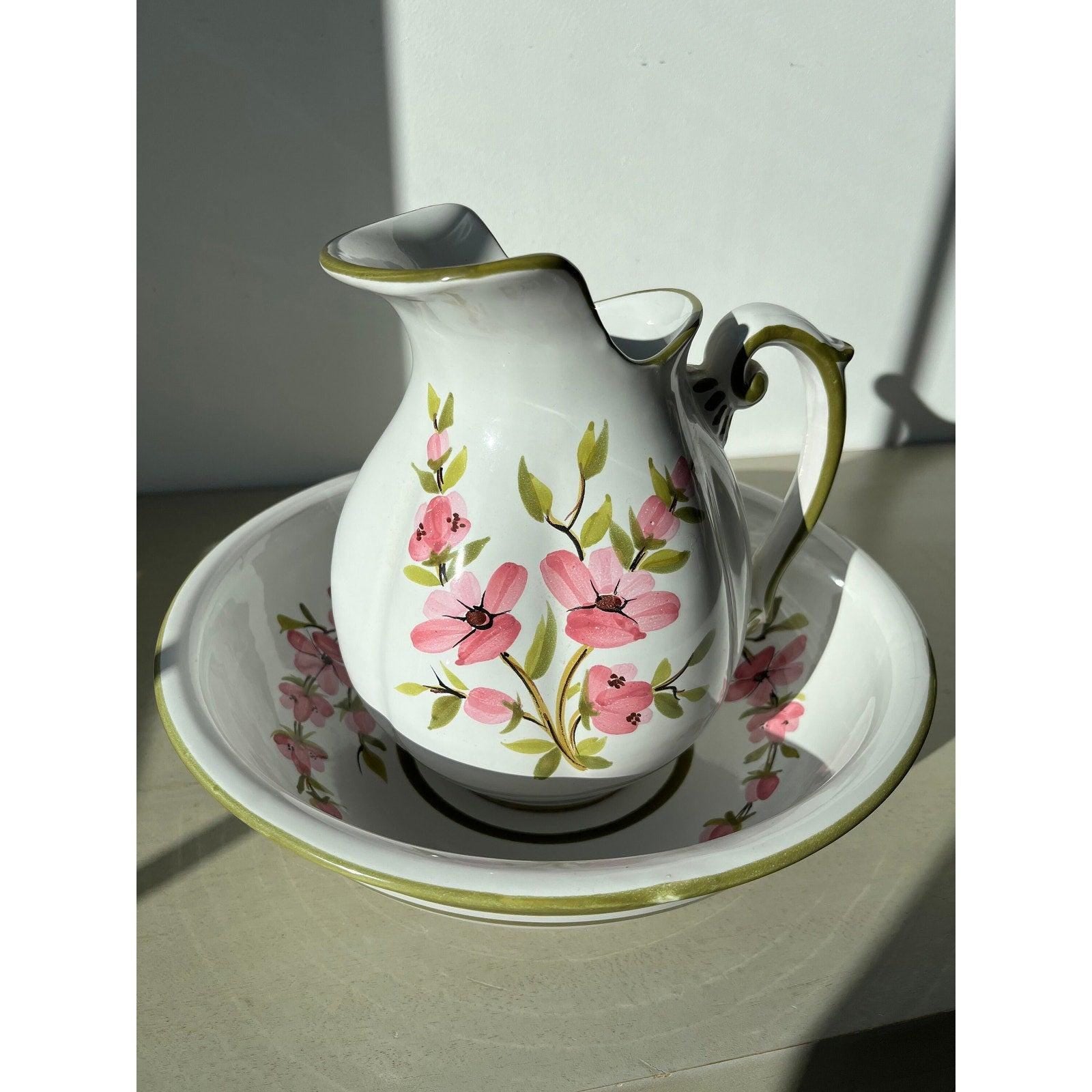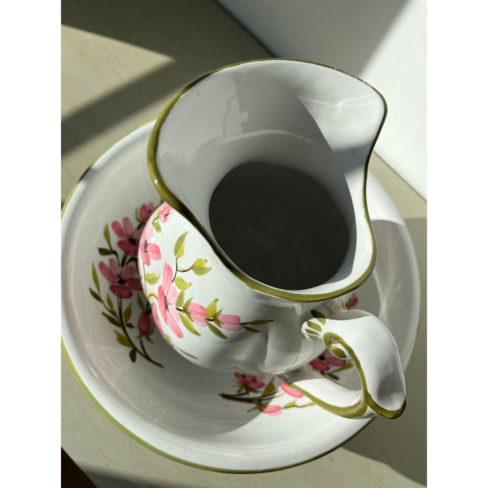 Gorgeous Italian ceramic set - recessed spout pitcher with a matching bowl