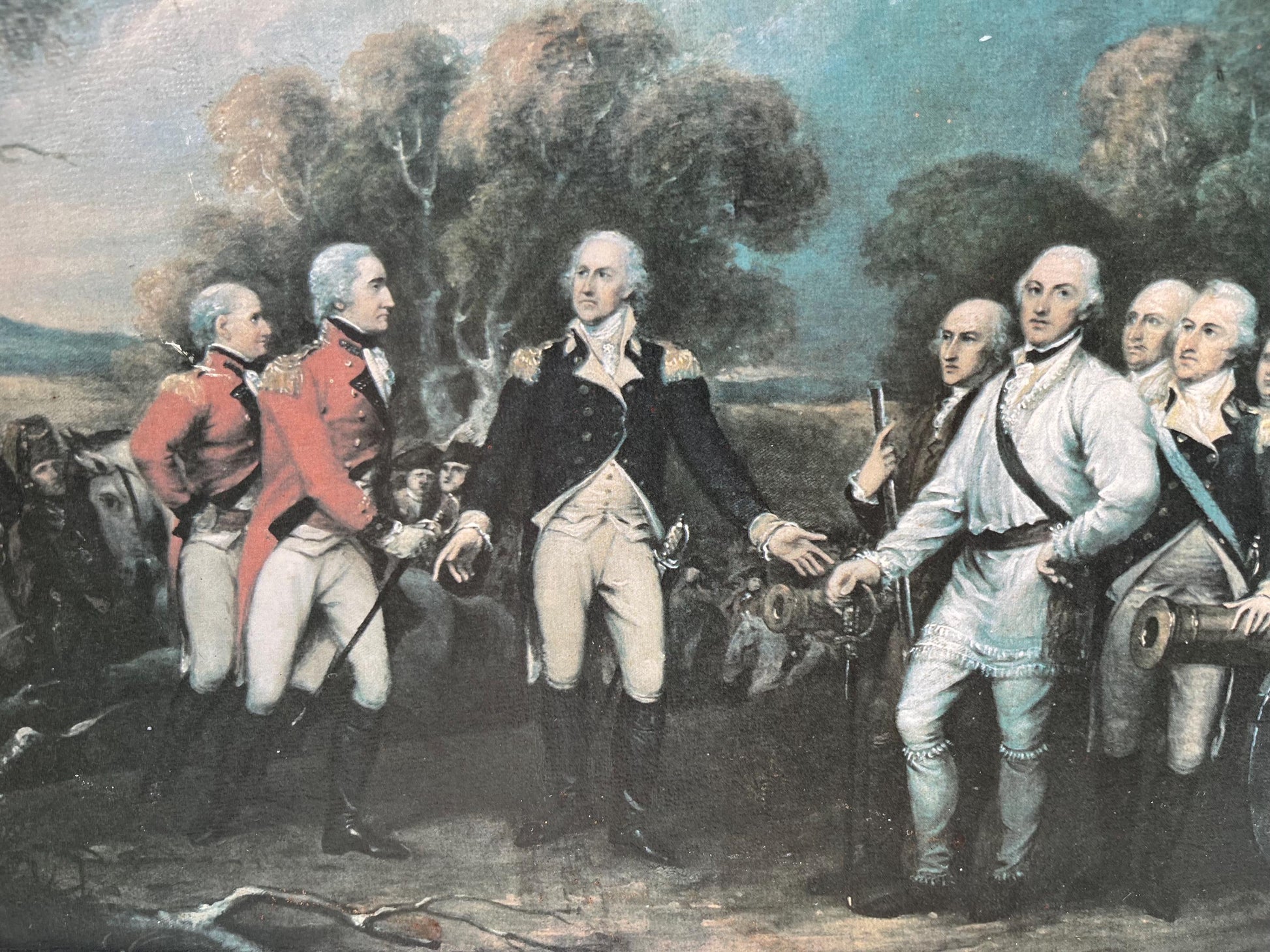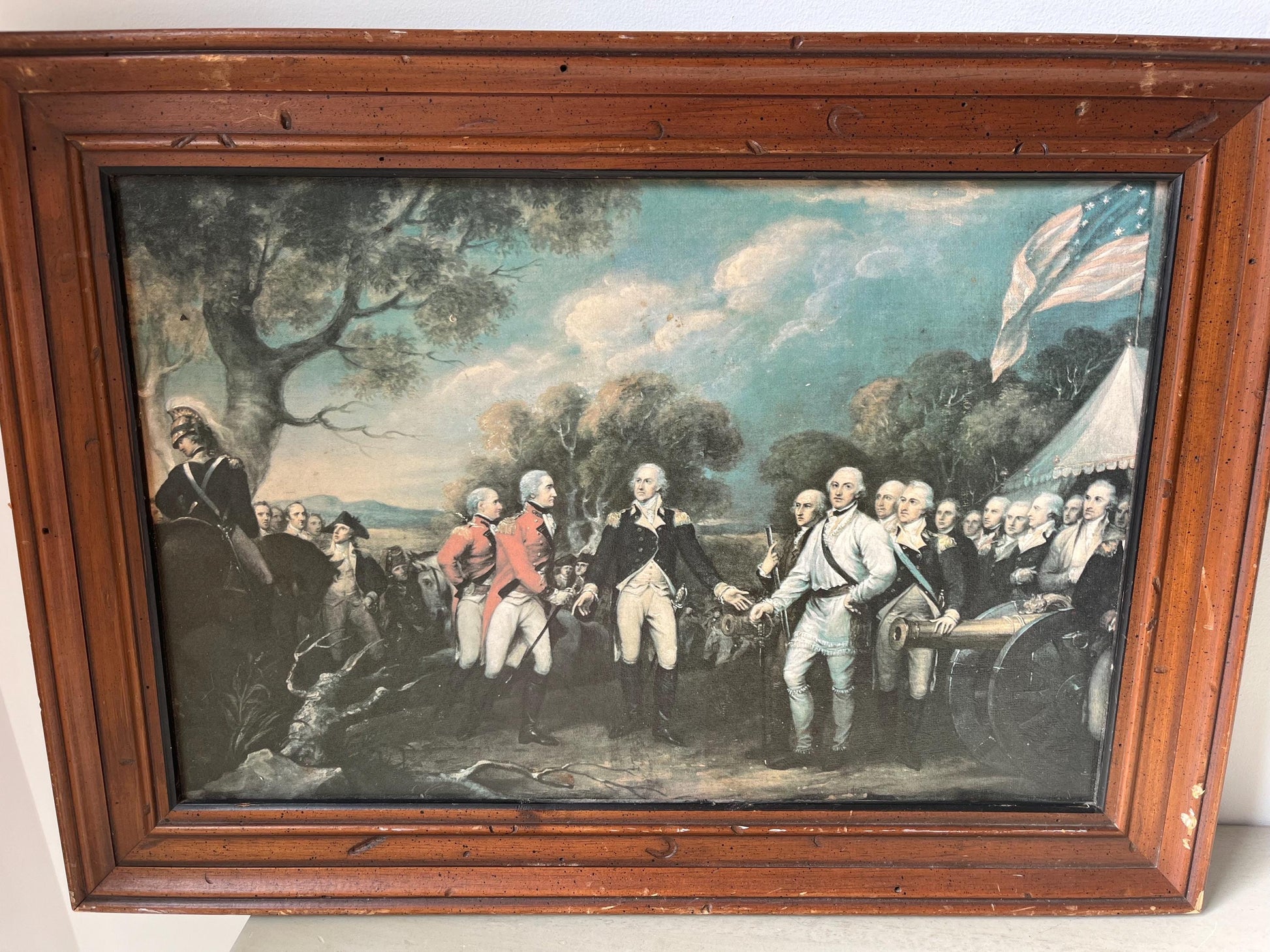 Framed print of John Trumbull‘s famous oil painting The Surrender of General Burgoyne. The original hangs in the United States Capitol rotunda in Washington, D.C.