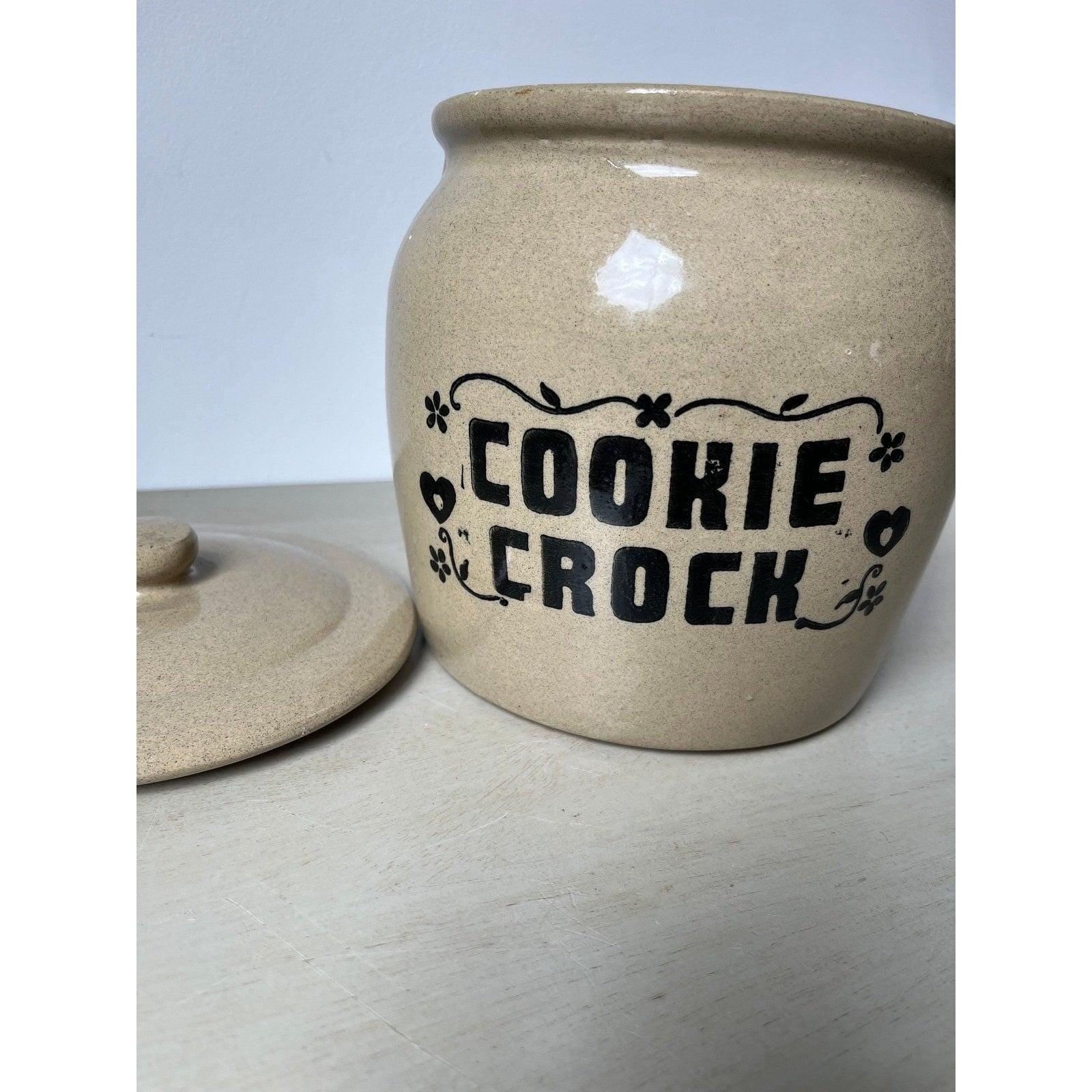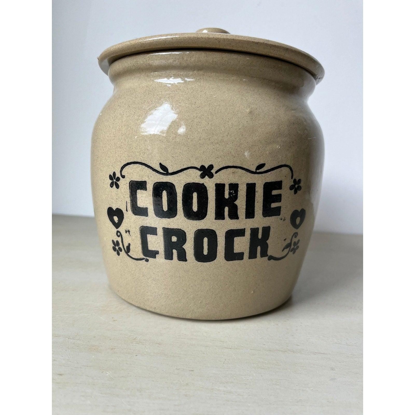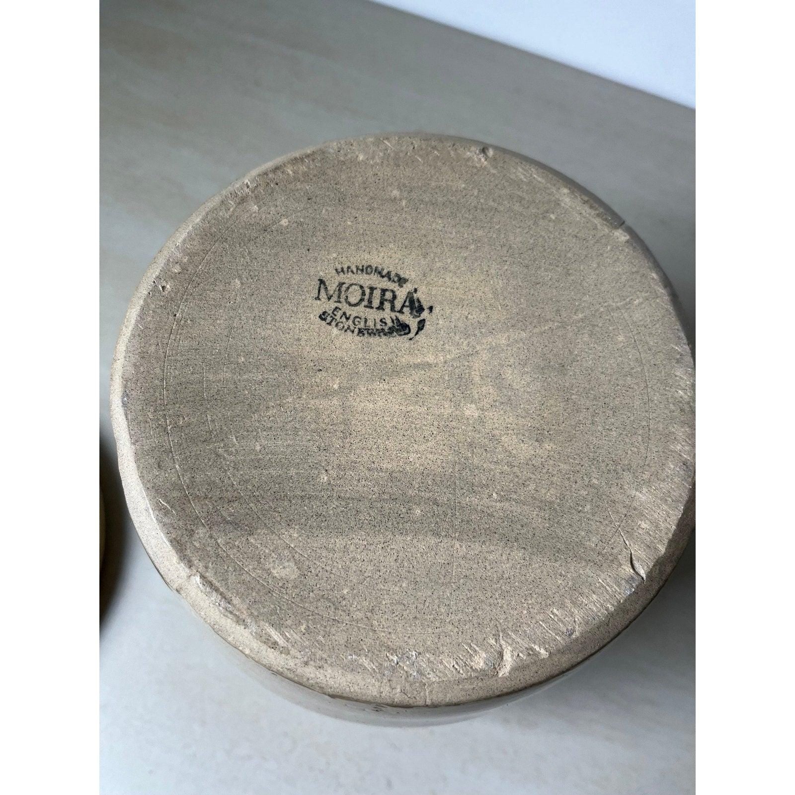 Handsome large vintage cookie crock made by Moira of England. Heavy stoneware. Very pleasing color and surface glaze, just what you need for that shelf that youre styling.