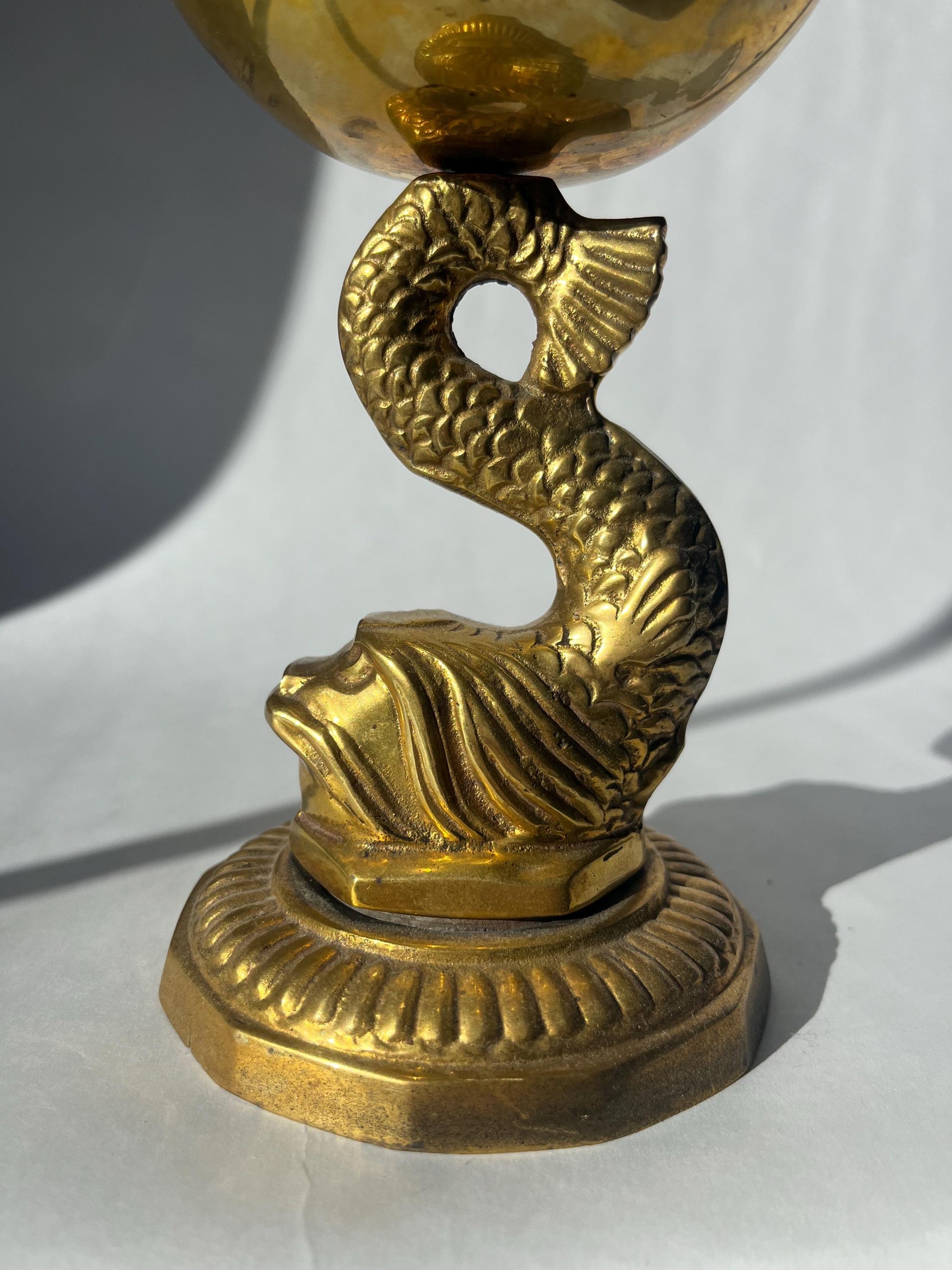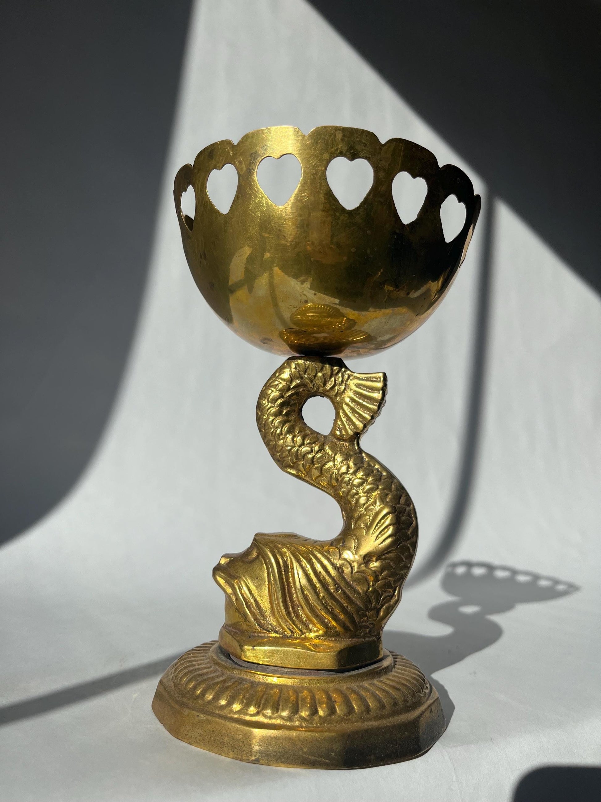 This is an adorable brass dish on a pedestal that is fish. Im thinking koi, but its open for interpretation :)