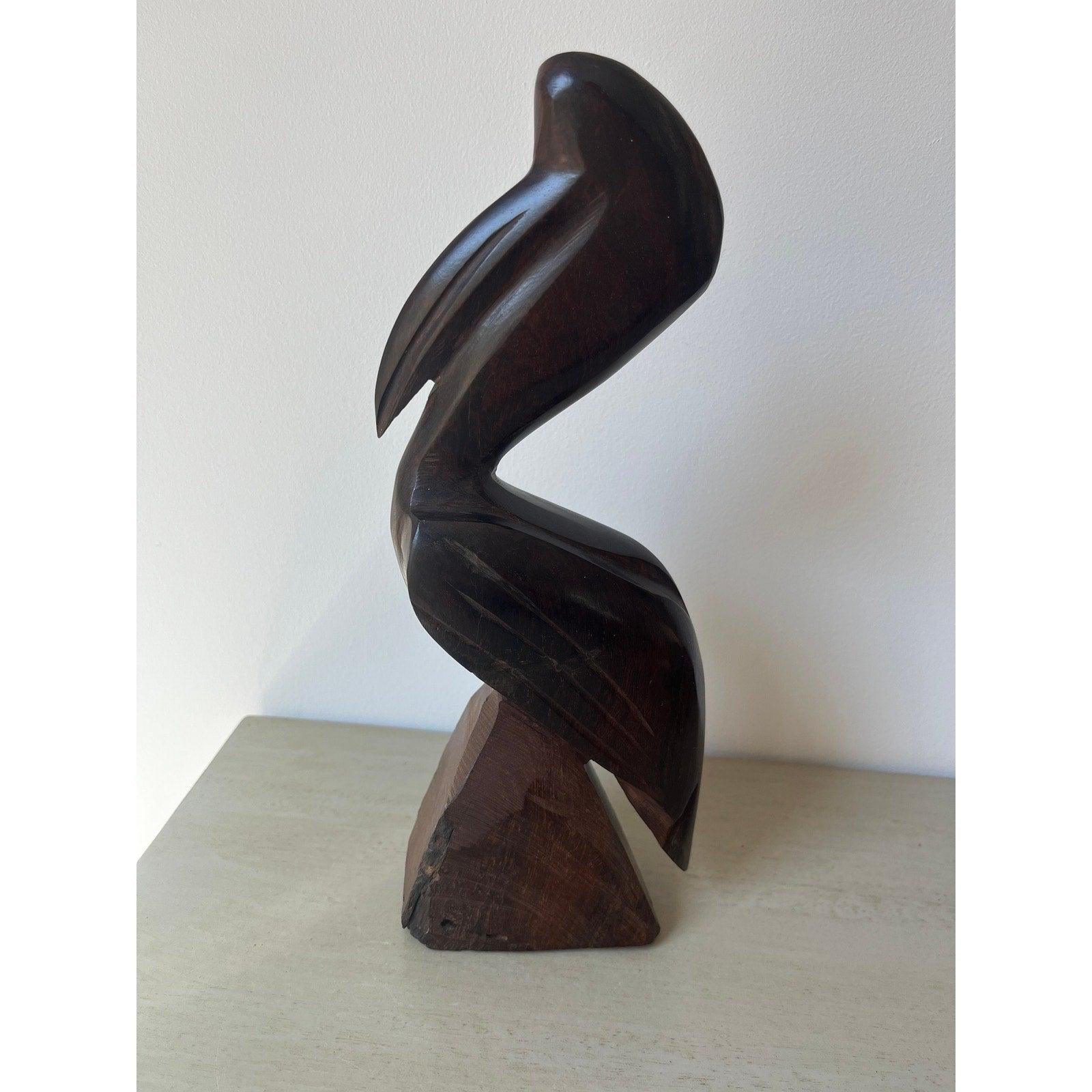 Beautiful vintage MCM hand-carved dark brown ironwood pelican.