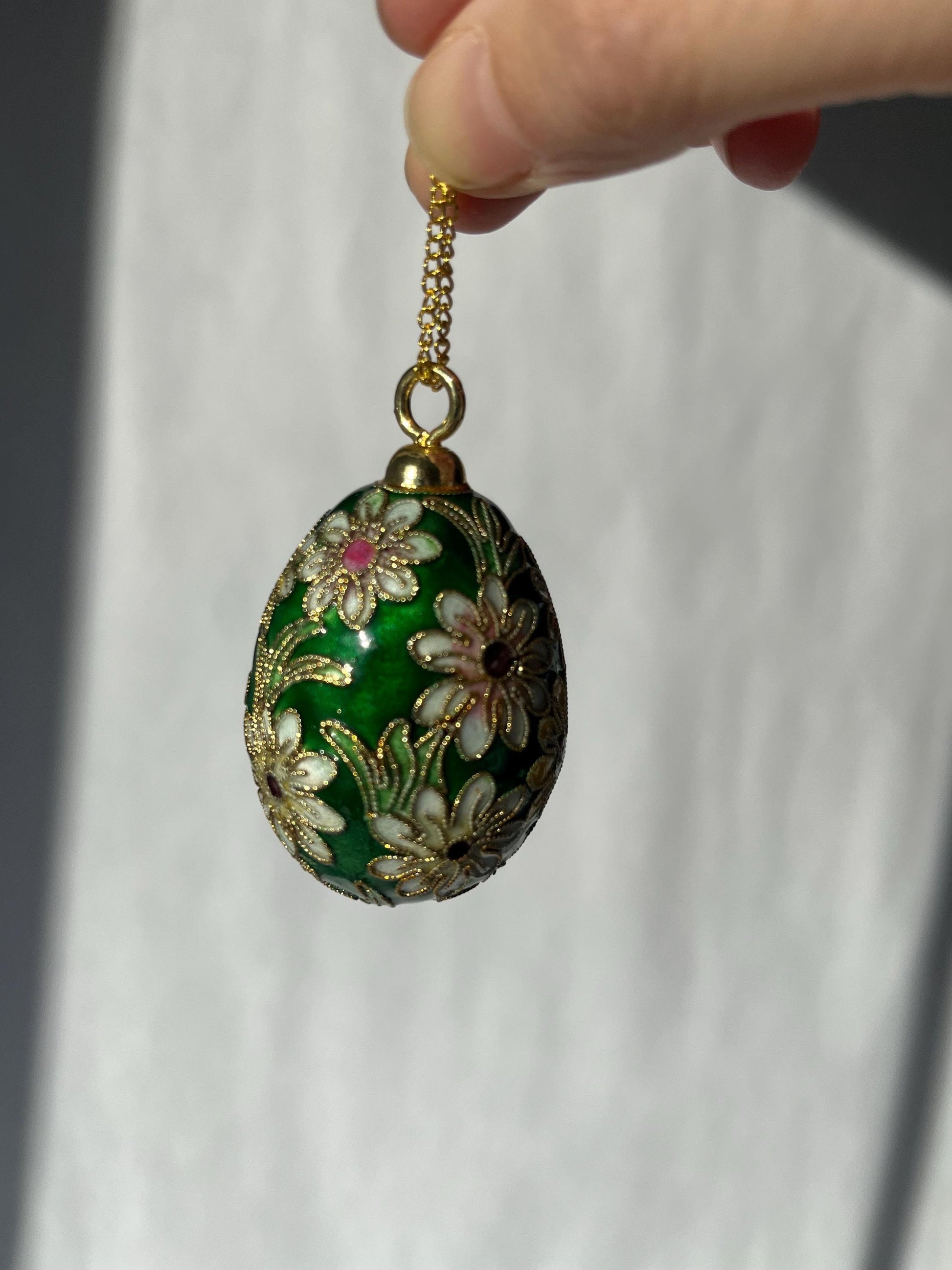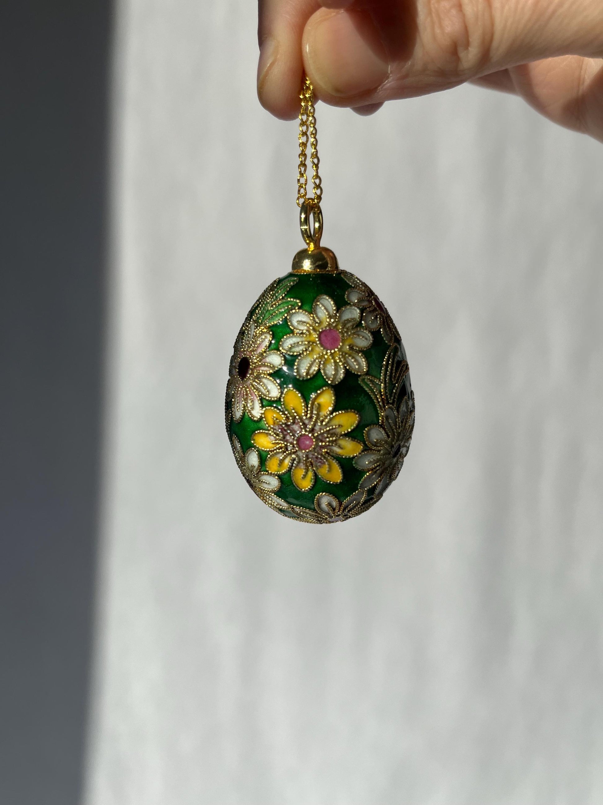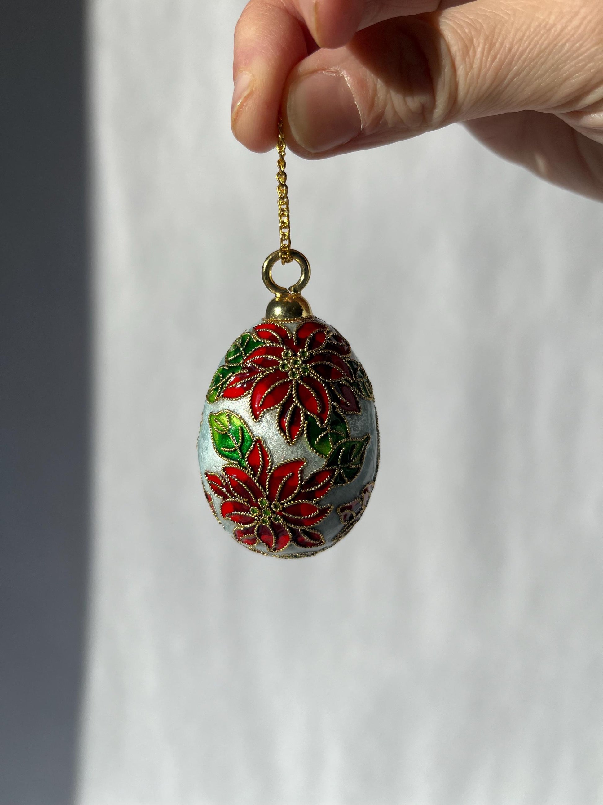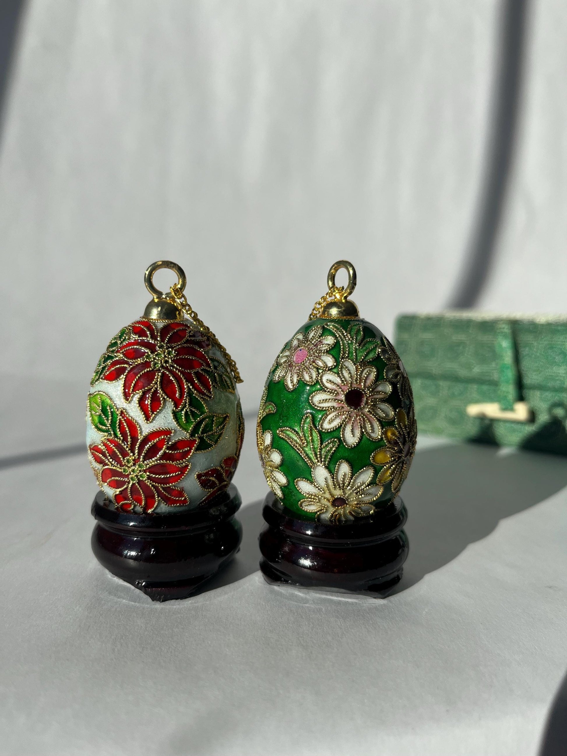 Wonderful set of 2 cloisonné eggs (approx 2 inches tall) in a box. A small stand for each egg included.