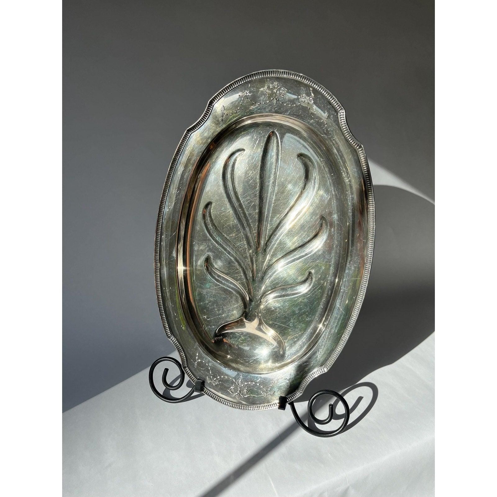 Vintage Grosvenor silver plated meat platter with a drip well and legs, by Oneida Silver. Beautiful!