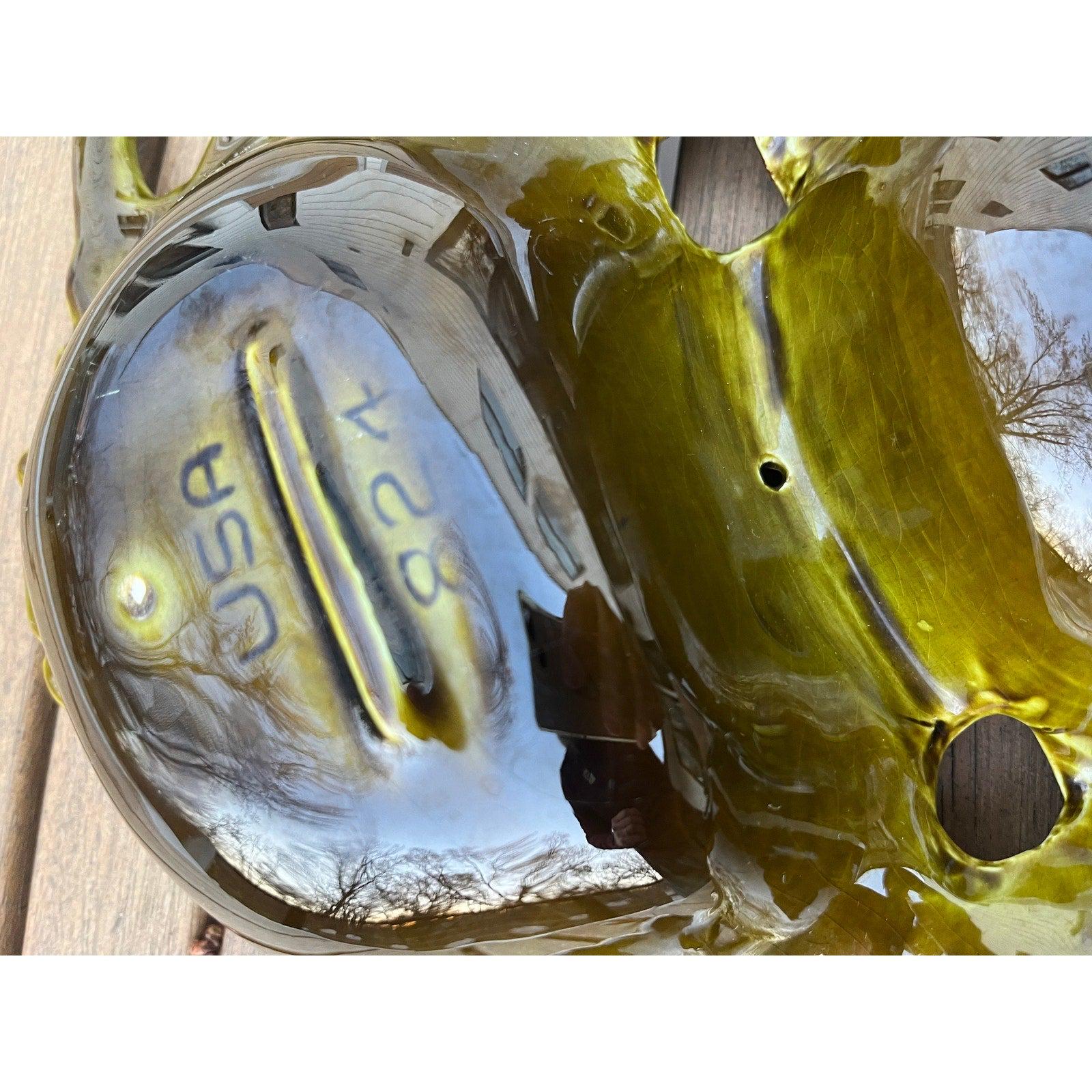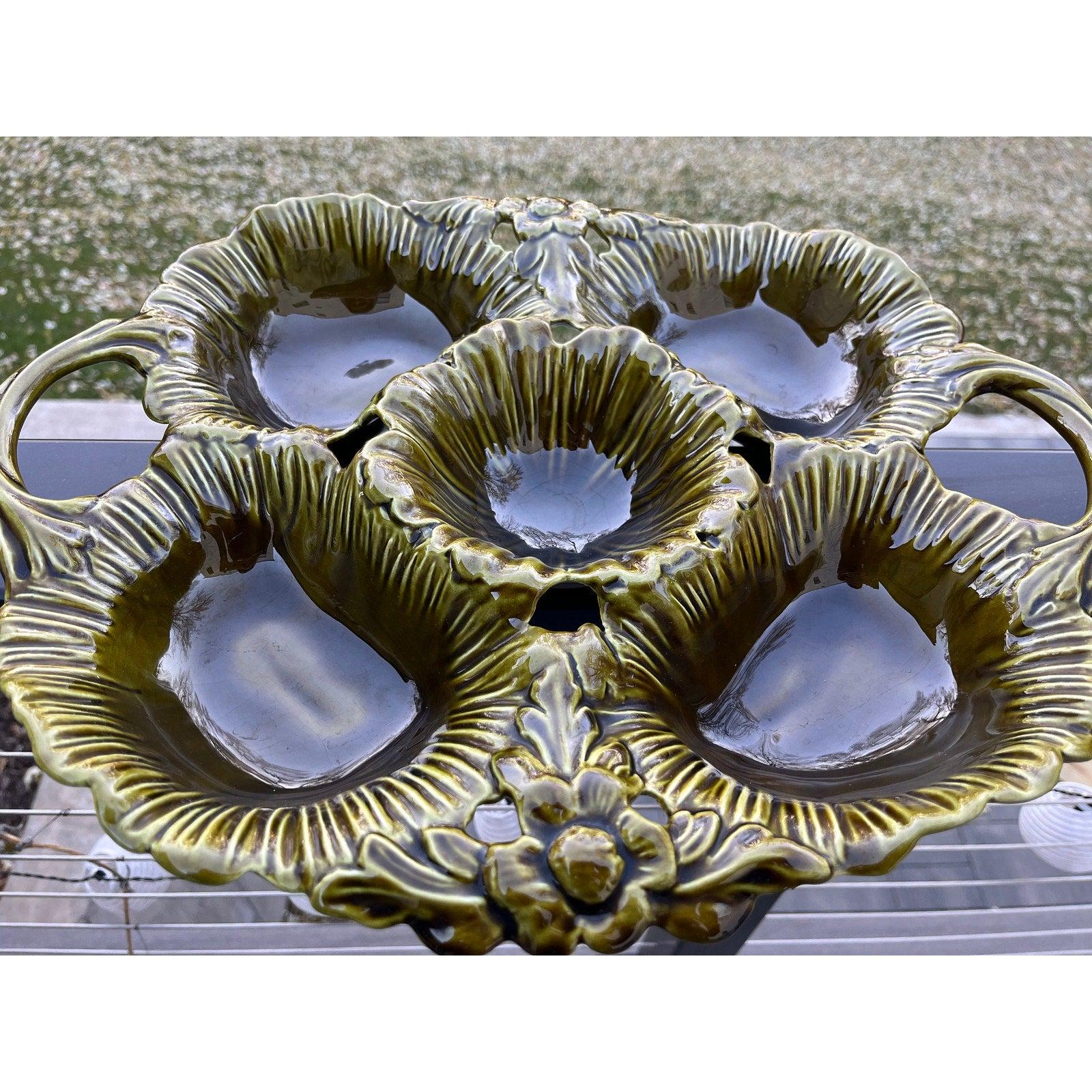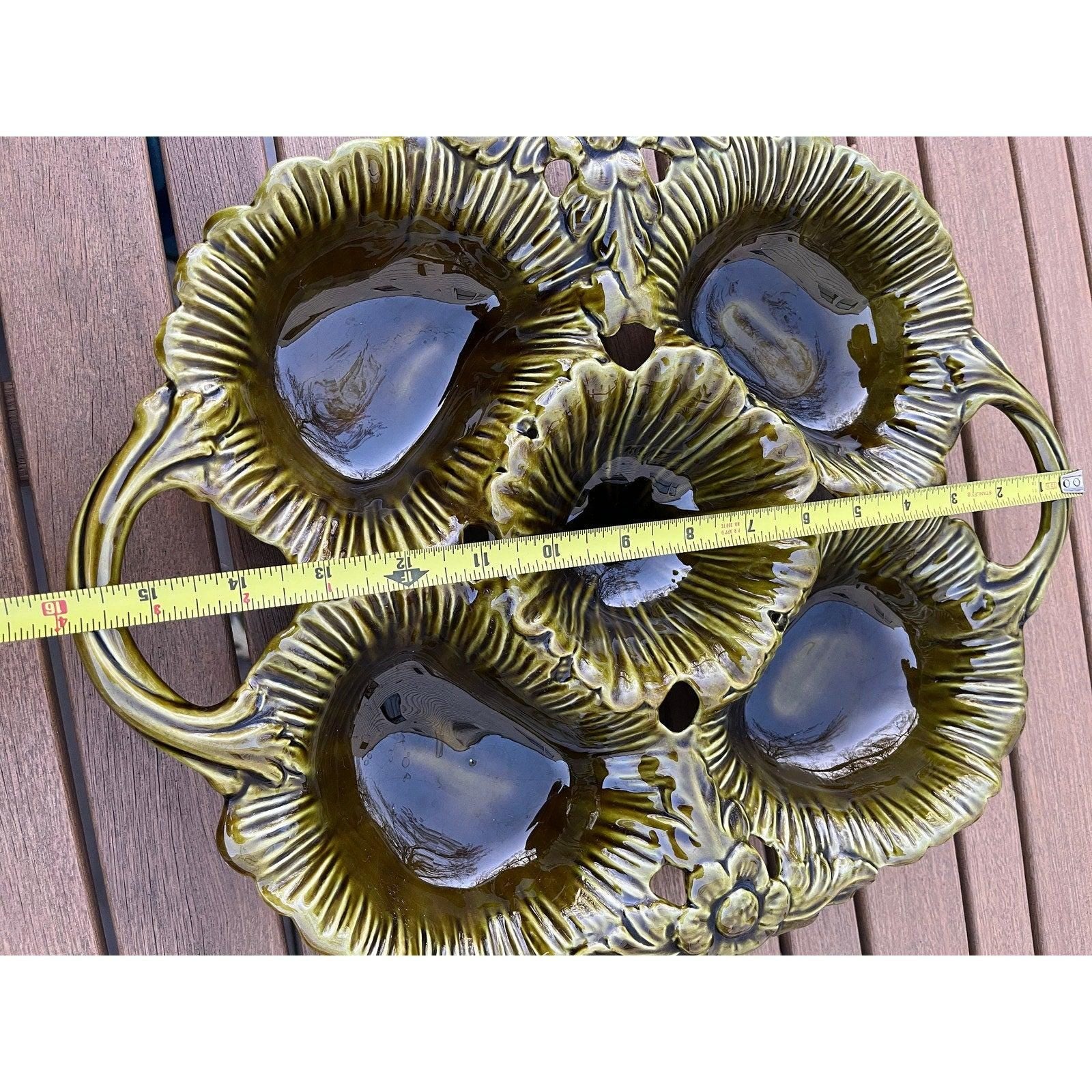 Vintage 1970s California Pottery avocado green large 5 sections divided serving dish. Made in USA.