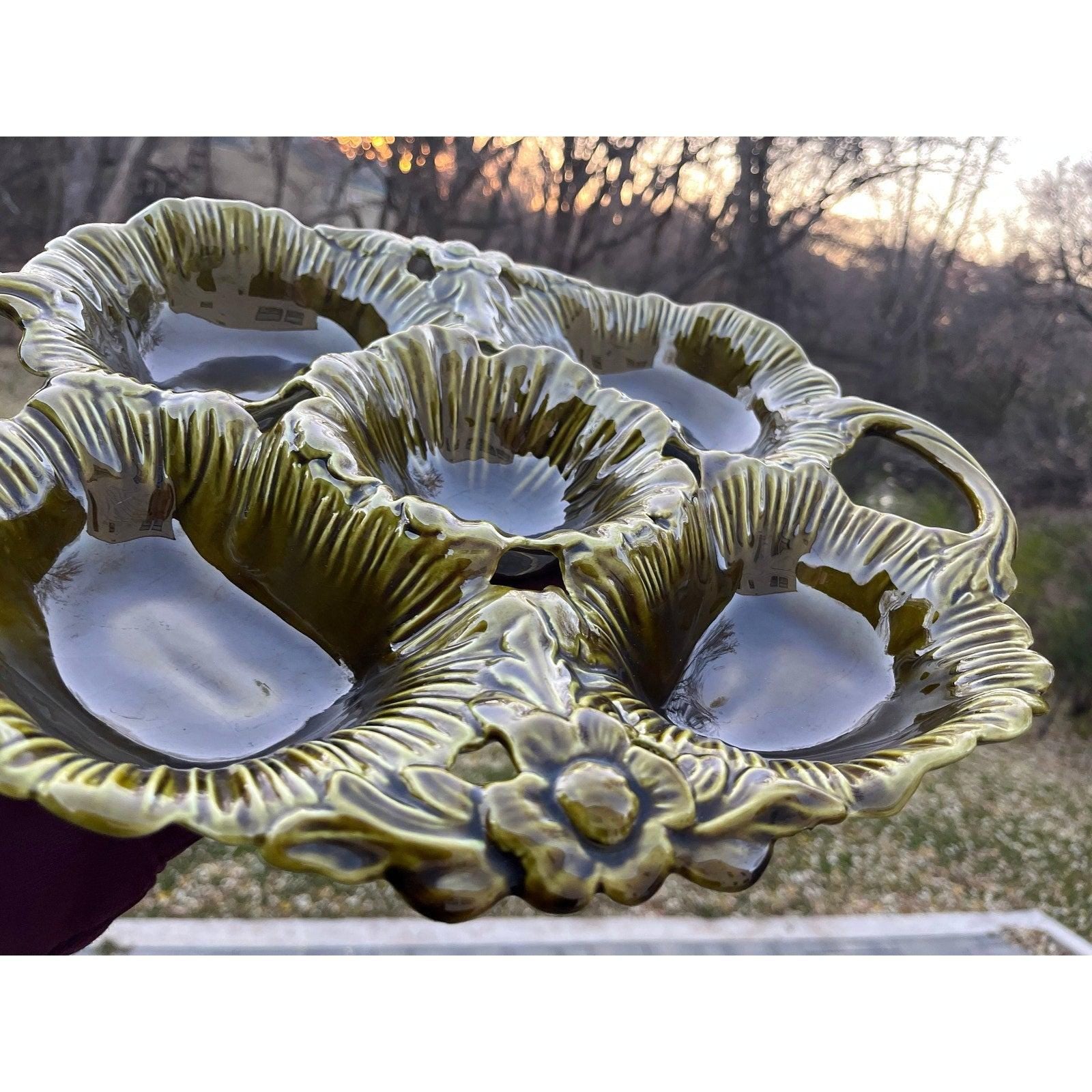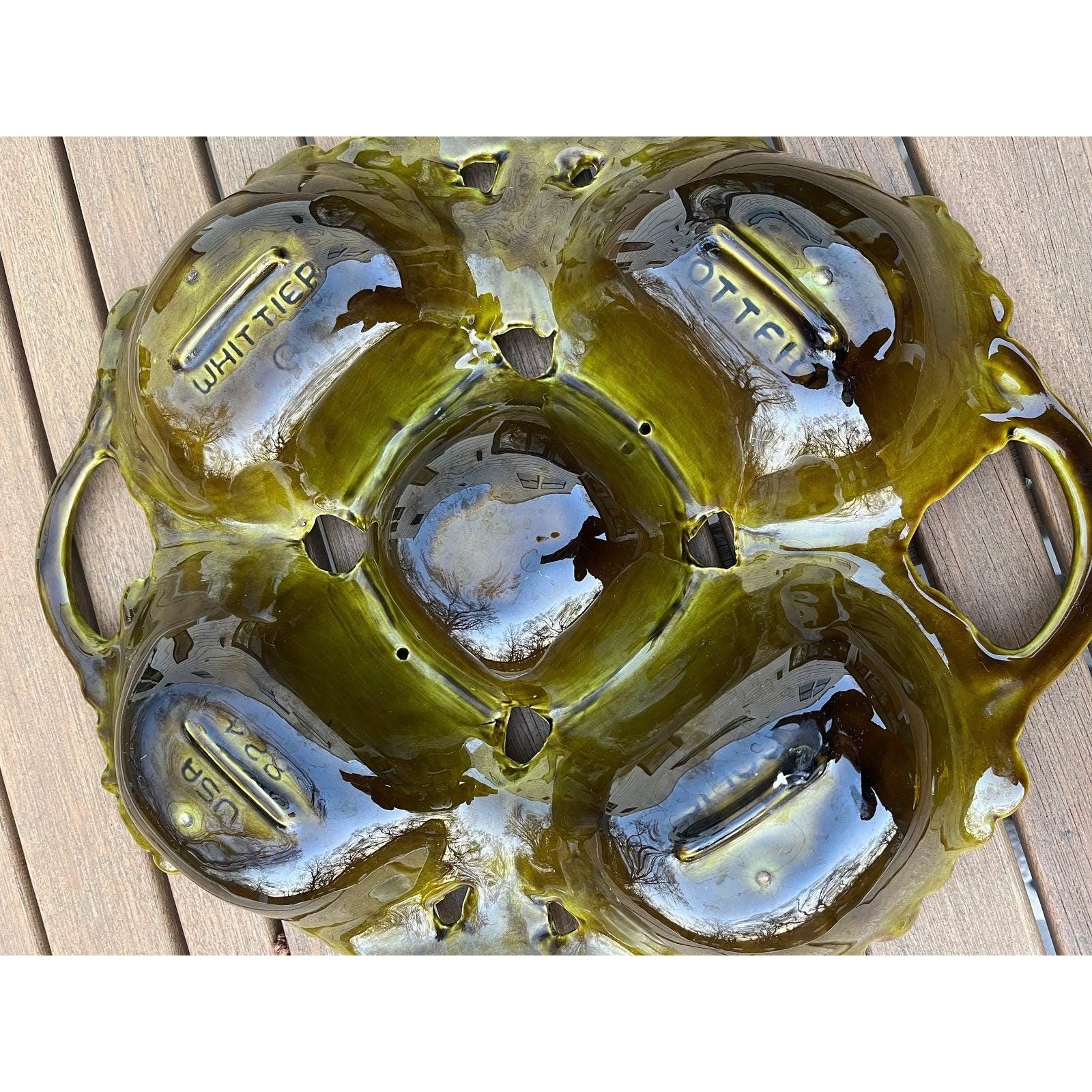 Vintage 1970s avocado green divided dish Whittier California Pottery