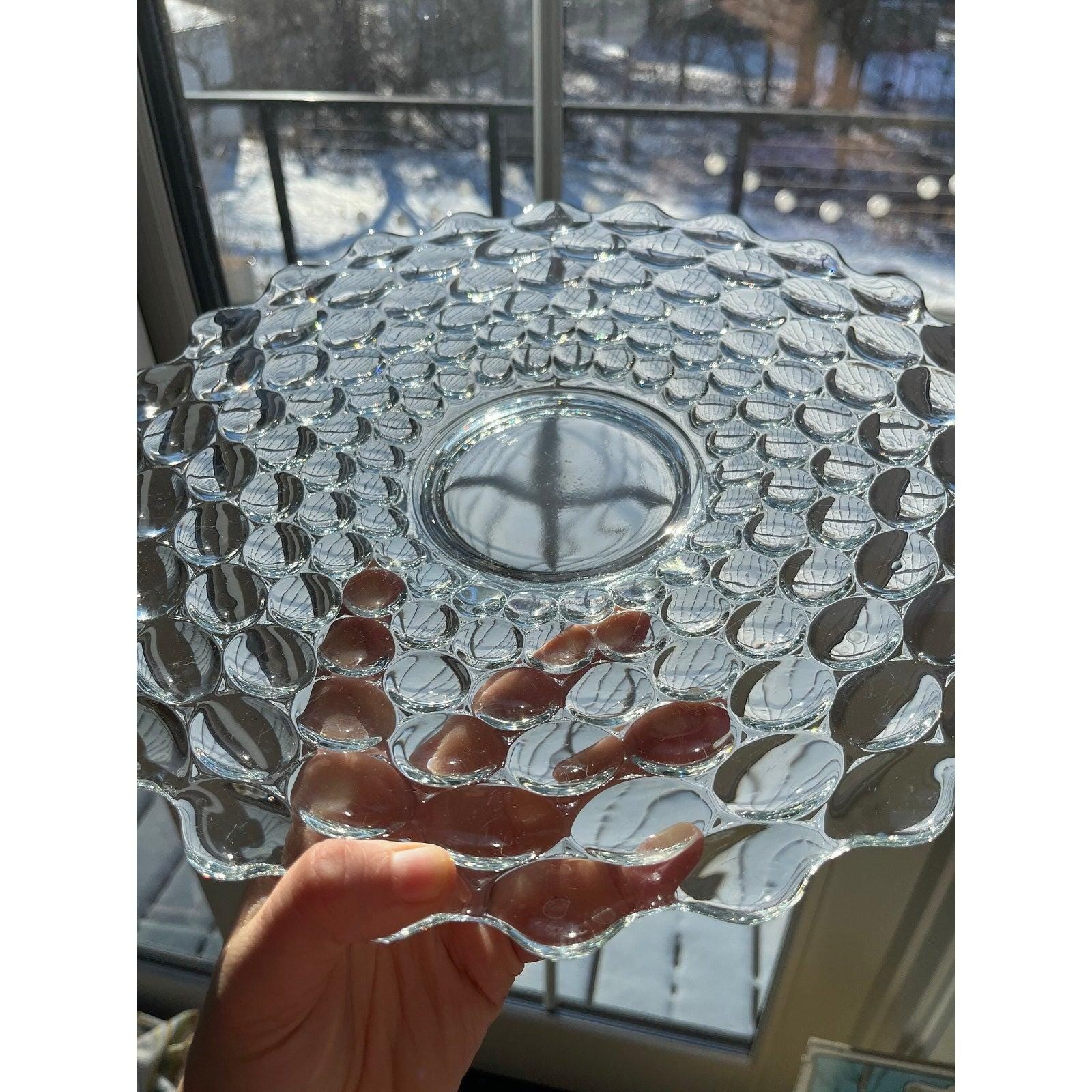 Vintage “bubble wrap thumbprint pattern glass serving platter