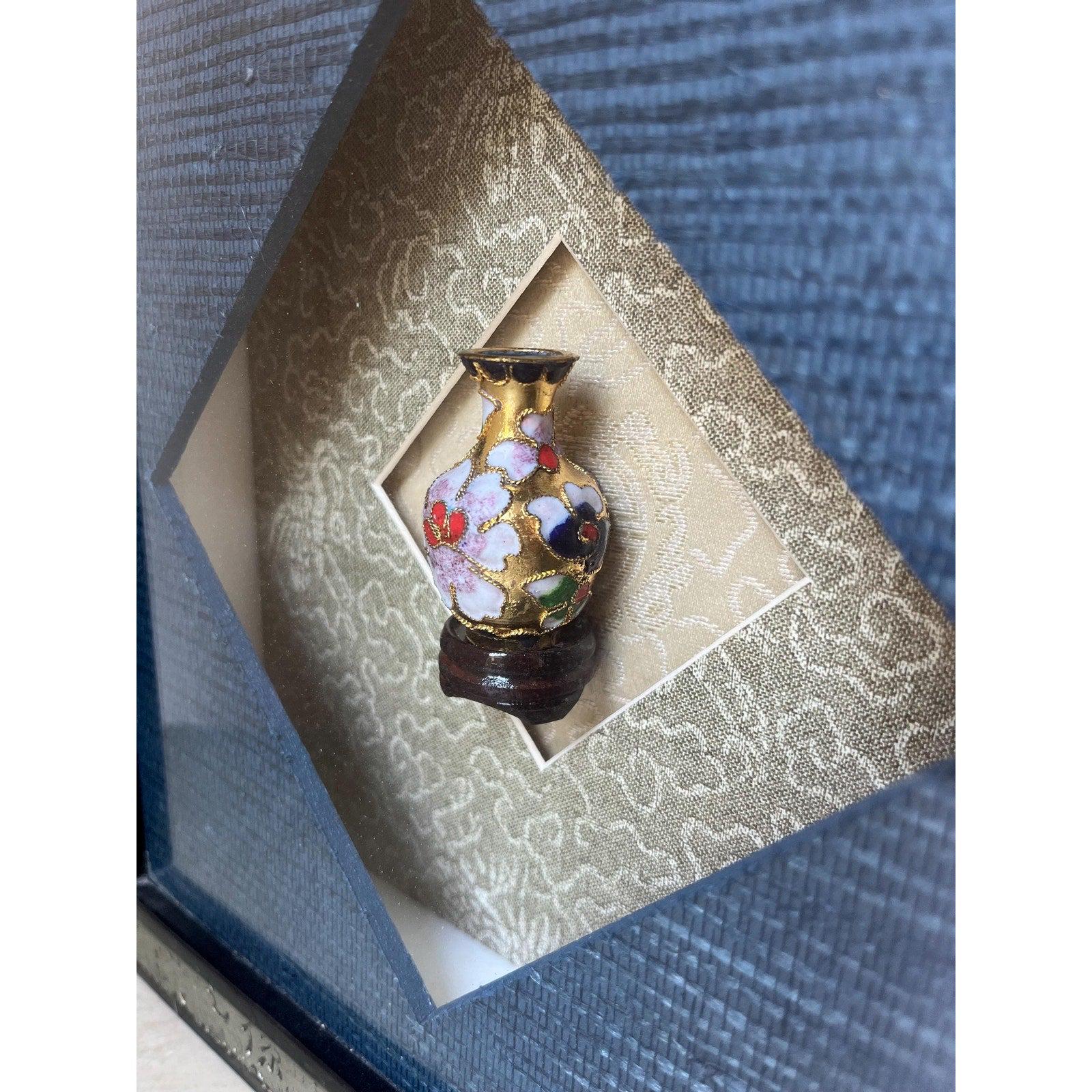 Vintage framed mini Cloisonne Enamel Chinese Vase in Shadow Box