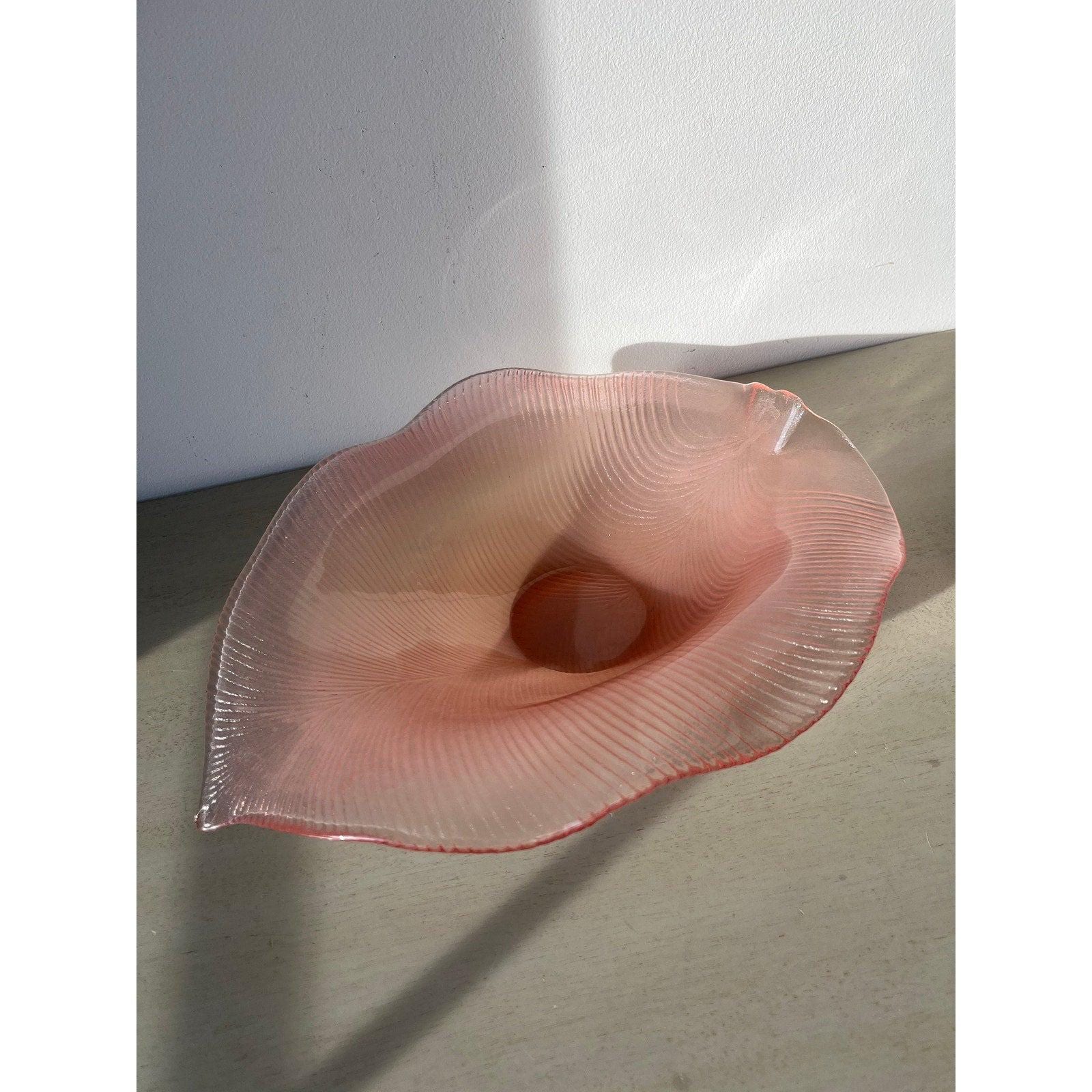 Vintage ‘Laslo for Mikasa pink satin art glass leaf shaped center piece bowl
