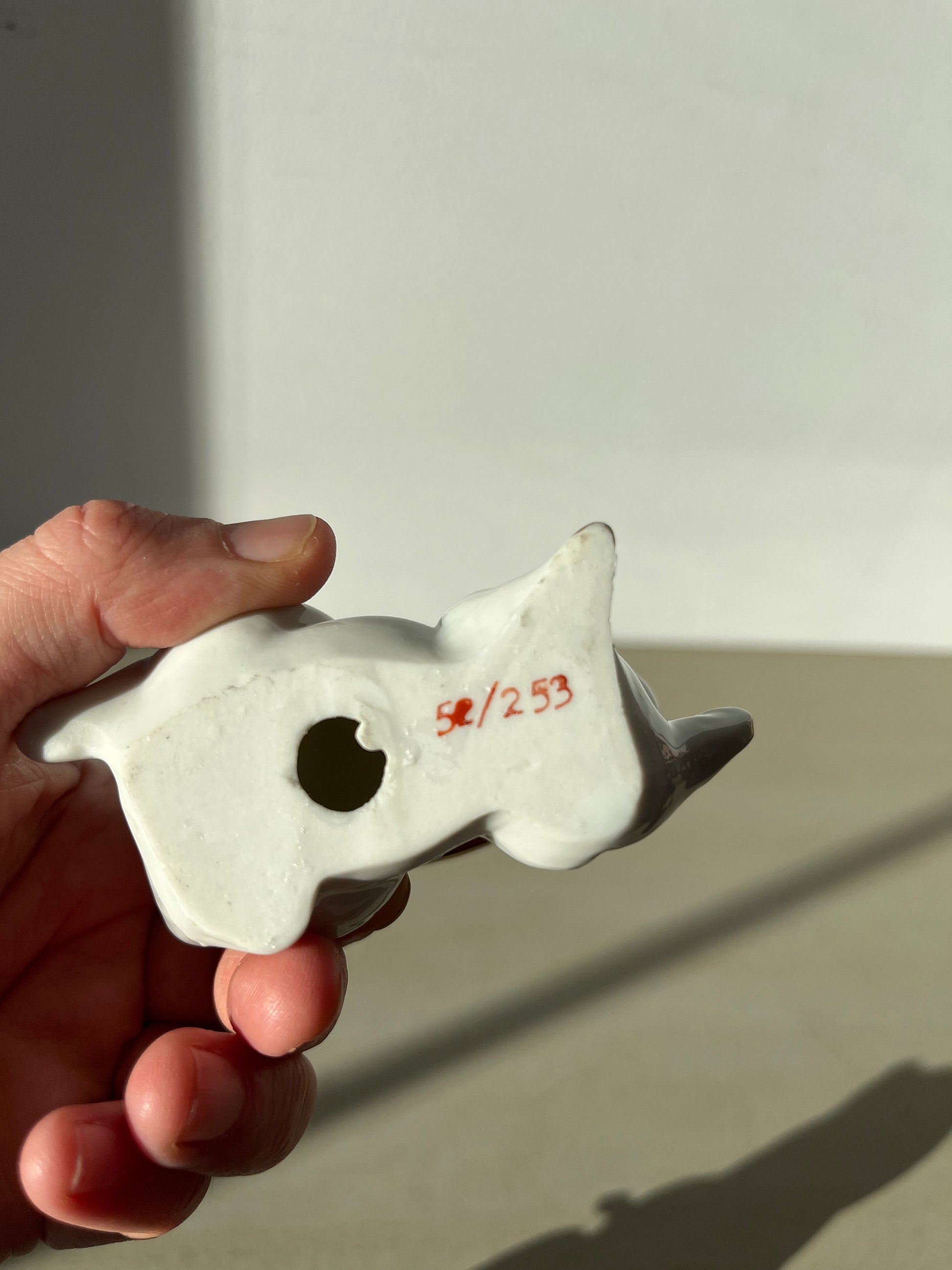 Vintage pair of white porcelain bunny rabbits, pink flowers & gold trim