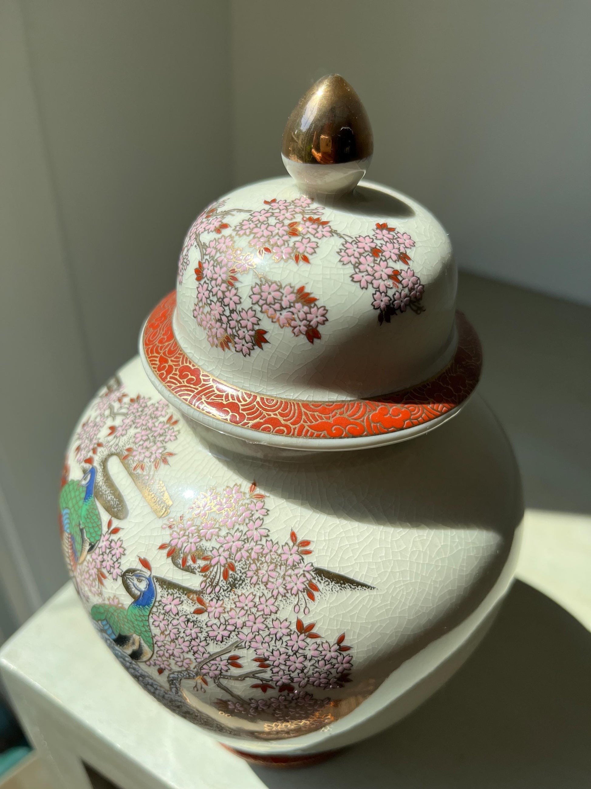 Vintage Satsuma Peacock Ginger Jar Made in Japan