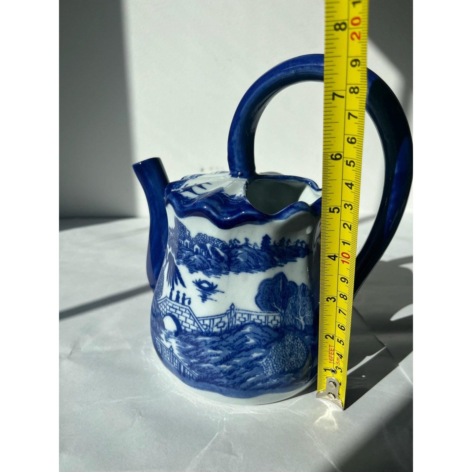 Fabulous Victoria Ware ironstone watering can, depicting oriental transferware landscape and village scenes, including a pagoda.